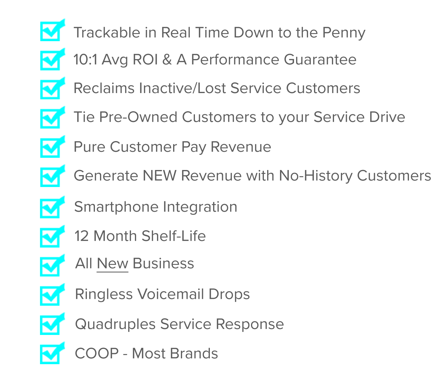 With over 4 times the service response and a huge spike in new Customer Pay Revenue, this high-quality 16 page card stock checkbook is customized with your services offers. We send it to customers who aren't currently servicing with you and script their name right on the front.